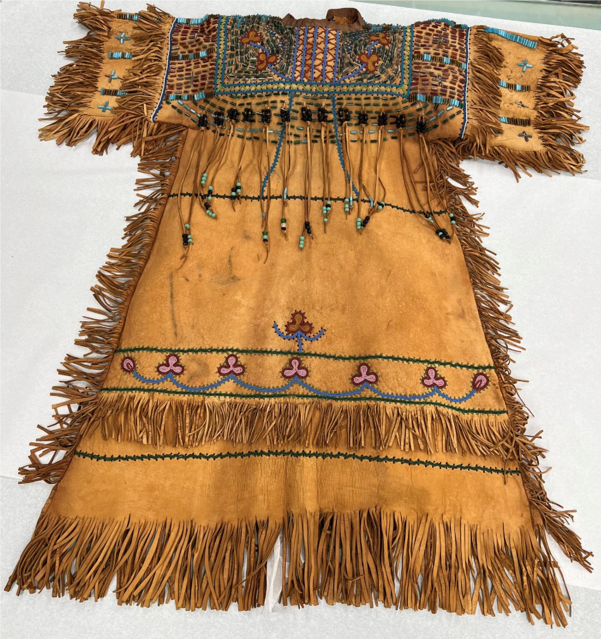 The University of Montana's Anthropological Collections Facility (UMACF) hold in its possession a unique belonging that tells a different story to the woes of repatriation. It is the story of a buckskin dress on loan by the lineal descendants of Emma Sansaver, a boarding school survivor.